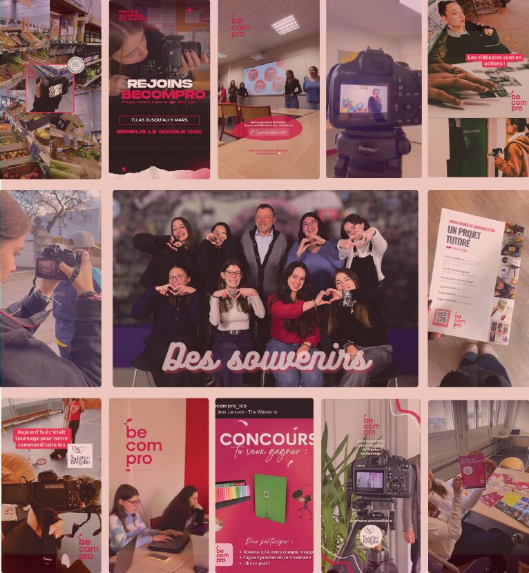 BecomPro est une micro-agence de communication étudiante issue d'un projet tutoré à l'IUT Besançon-Vesoul. Composée de huit étudiantes en BUT Information-Communication, elle propose ses services à des tarifs avantageux dans des domaines variés : graphisme, vidéo, webdesign et gestion des réseaux sociaux. Les bénéfices sont reversés à des associations étudiantes. J'y occupais le rôle de graphiste.