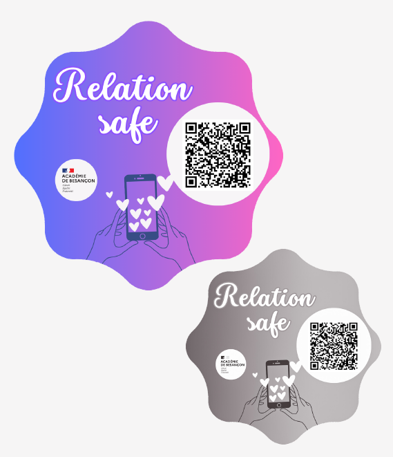 L’Académie de Besançon nous a mandatées pour créer des visuels intégrant un QR code renvoyant vers leur questionnaire sur les relations saines. J’ai conçu plusieurs déclinaisons de stickers sur Illustrator, en respectant leurs couleurs et logos. Après retours et ajustements — dont la réduction du nombre de logos pour alléger la composition — la version finale a été réalisée sur Canva. Ce projet m’a appris à gérer plusieurs cycles de modifications tout en maintenant une relation client professionnelle.