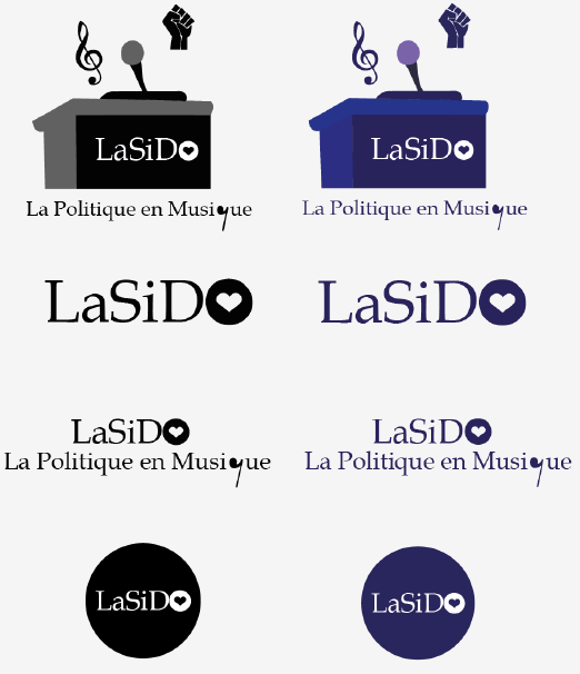 Commandé par Madame Simon, enseignante-chercheuse de l’IUT, ce projet consistait à créer un logo pour LaSiDo, un projet analysant la circulation des discours musicaux à portée politique. J’ai mené le projet seule, en concevant le logo sur Illustrator et en réalisant la mise en page sur InDesign. Le défi était double : respecter une contrainte de temps très courte, et synthétiser trois univers — musique, politique et réseaux sociaux — en un seul visuel lisible et déclinable.